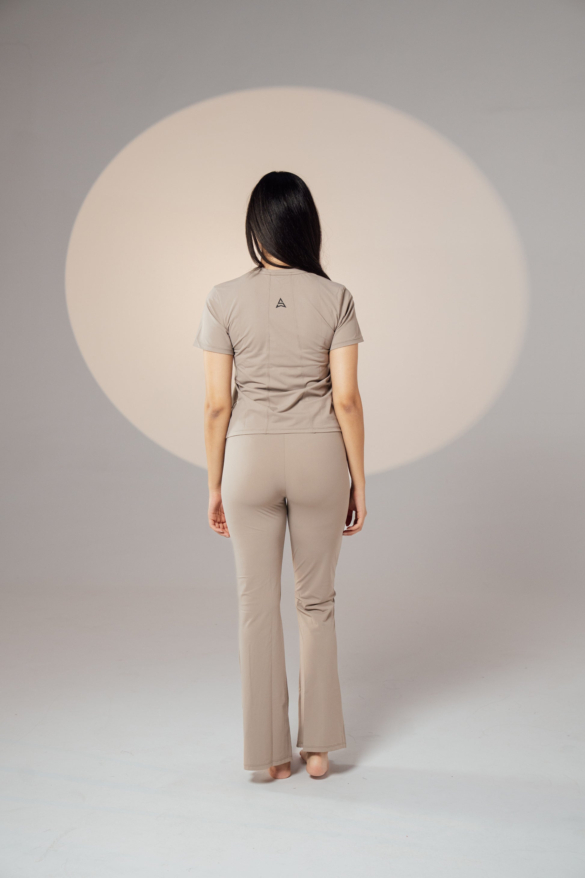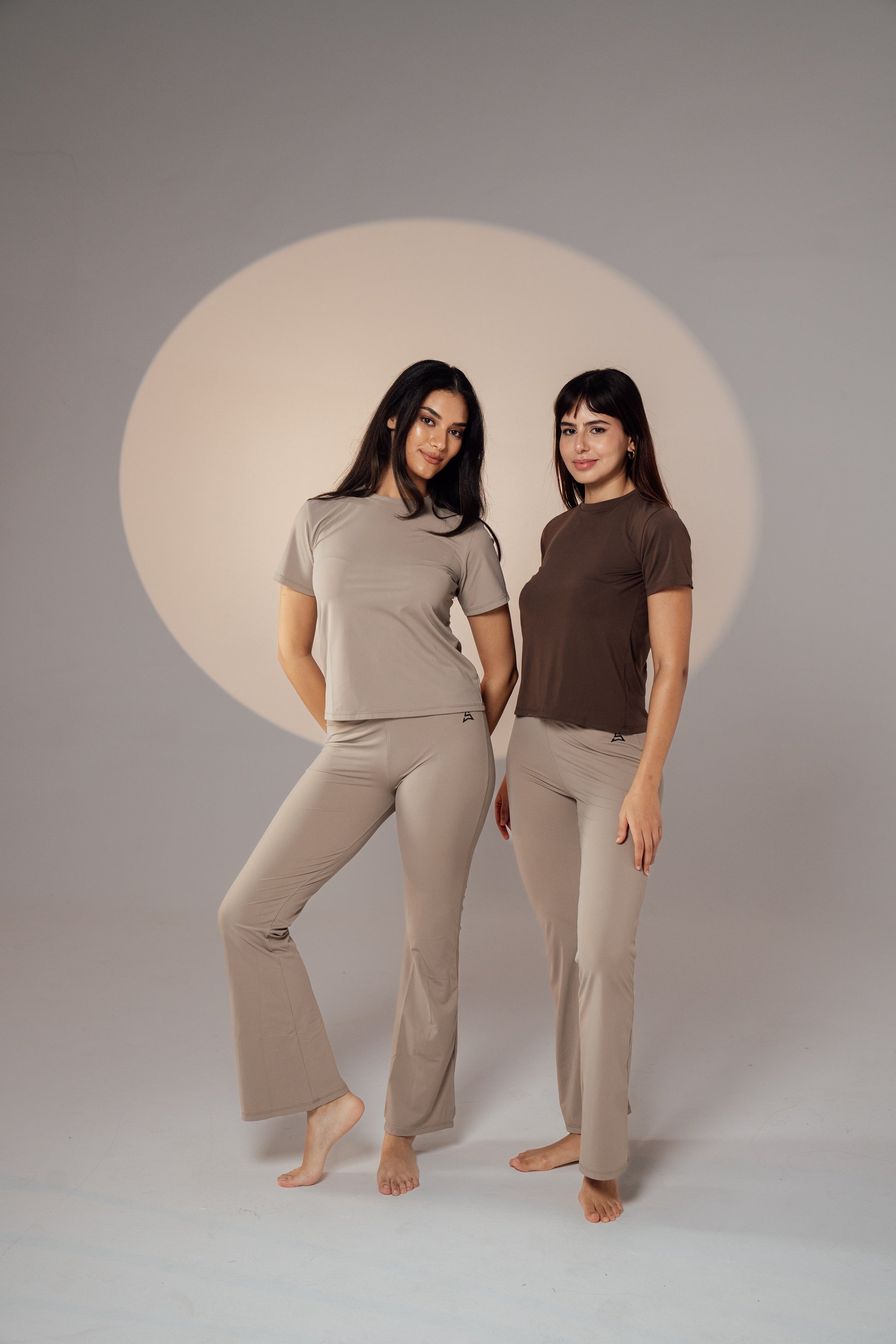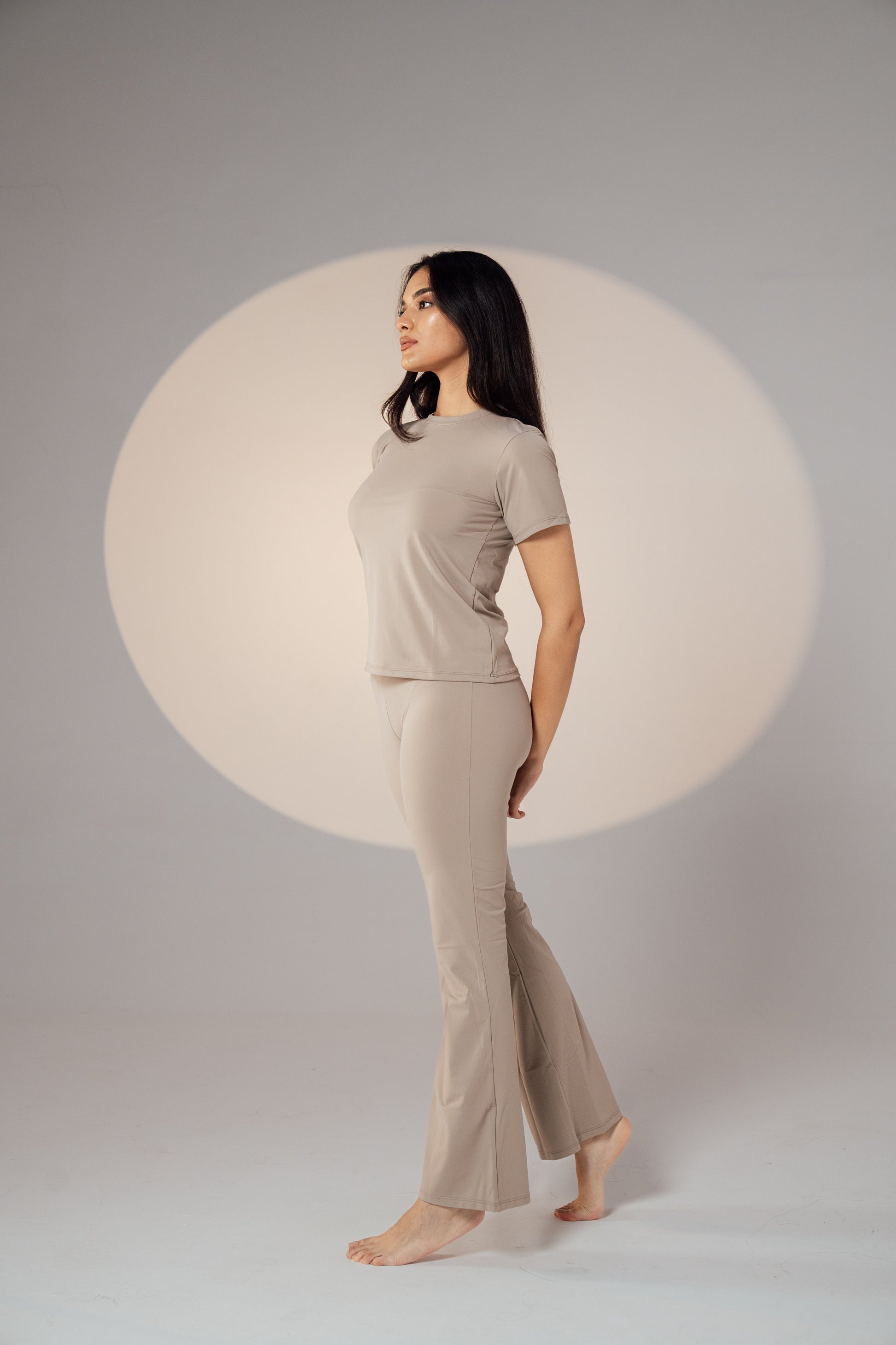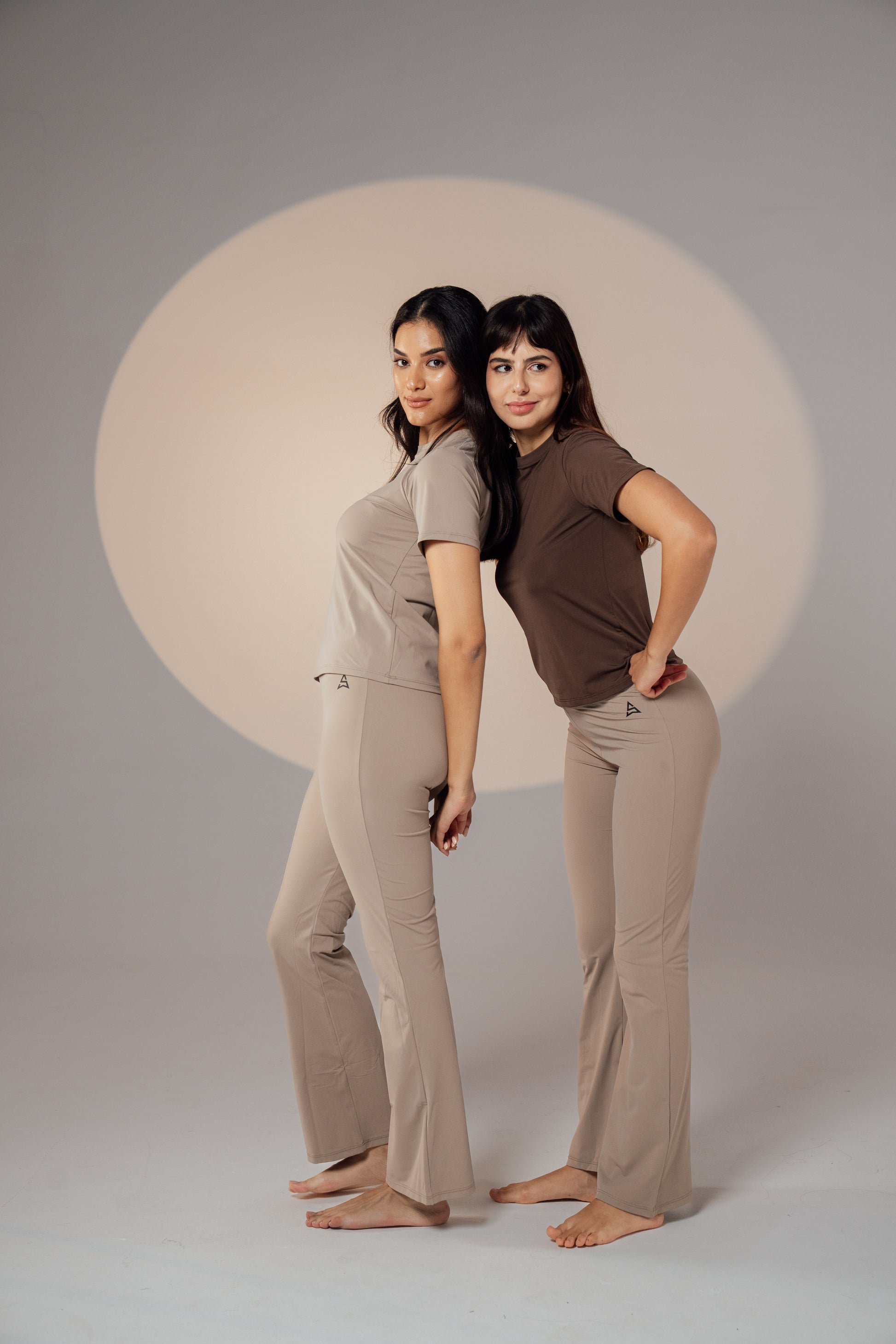 Pantalon flare coupe patte d’éléphant en tissu ultra-extensible effet seconde peau. Taille haute sculptante pour un maintien élégant, idéal pour le yoga et le quotidien. Confort, fluidité et style assuré.