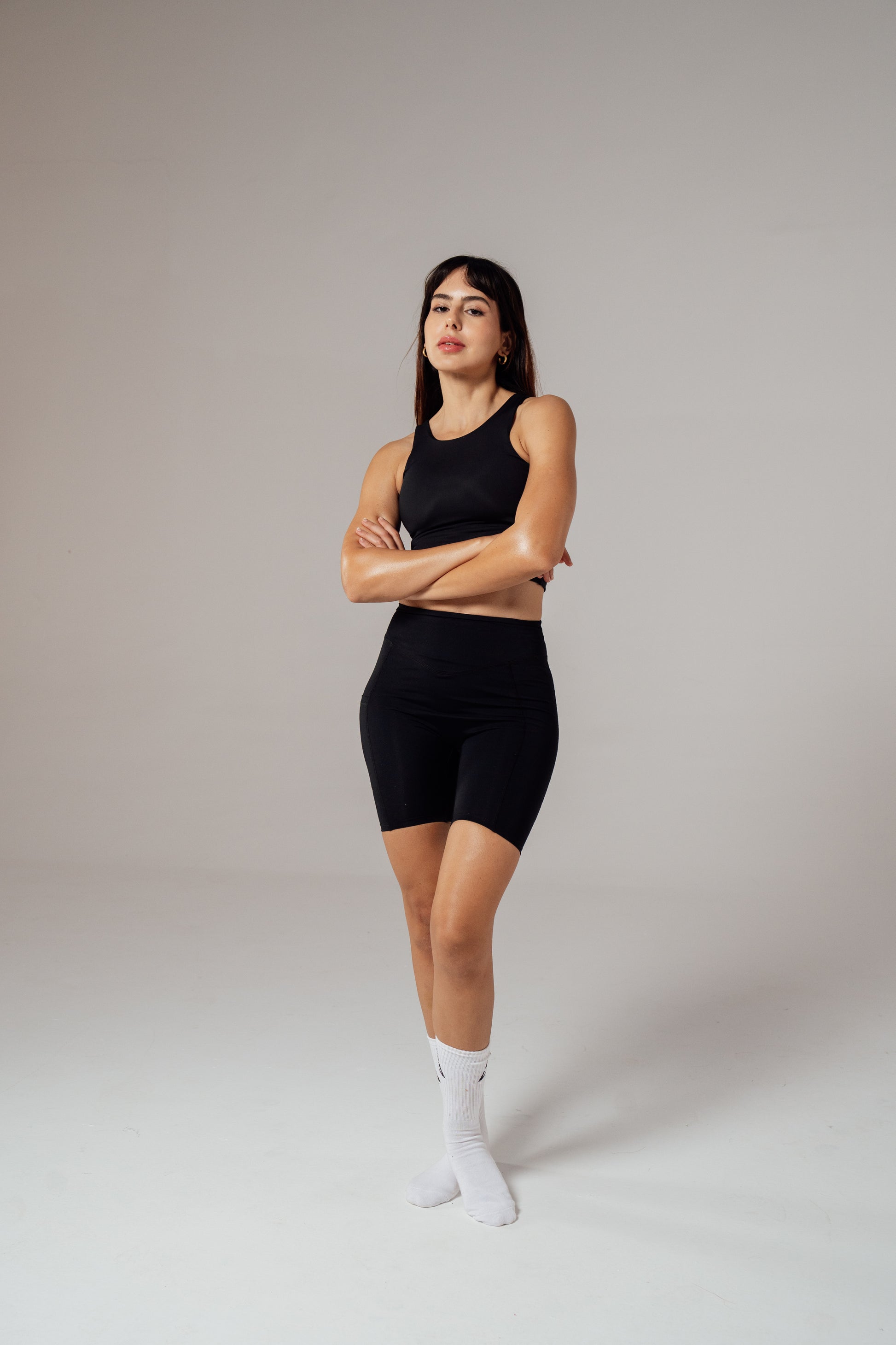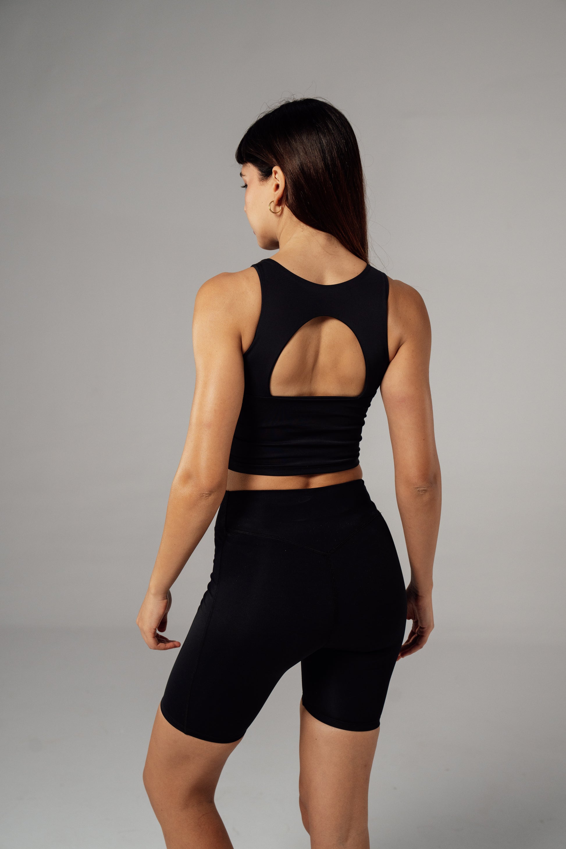 Top Noir en tissu athletic-fit, léger et extensible. Sa découpe fonctionnelle avant/arrière assure une liberté de mouvement optimale tout en garantissant confort et performance , Adapté au yoga, fitness et entraînements intenses